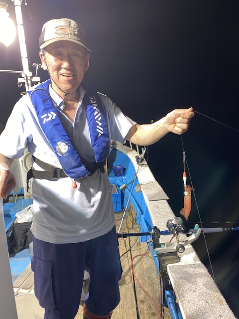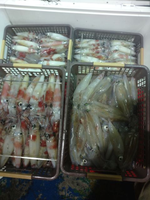 前の晩の釣果(アカイカ)を踏...