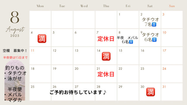 8月 ご予約お待ちしていま