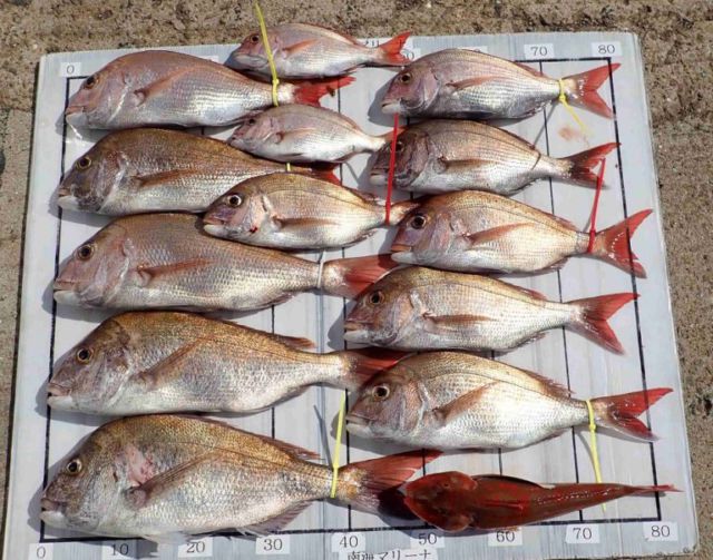 3名様 真鯛53センチまで13枚...