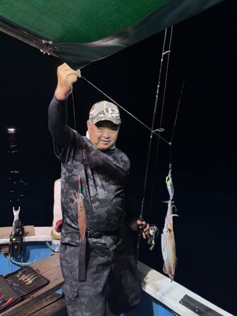 夜便アカイカ釣り!