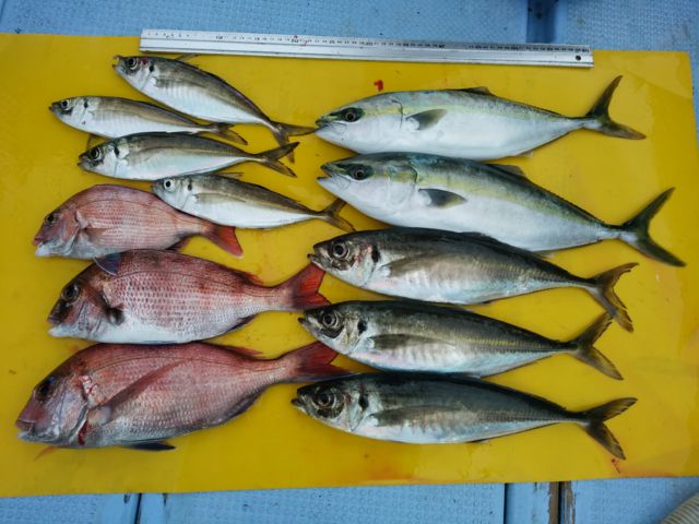 真鯛は良型ハマチ交じりでい...