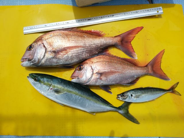 ハマチは活性高く、鯛はポツ...