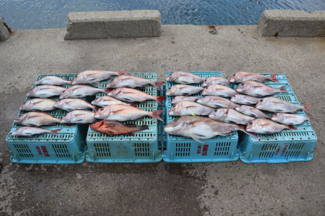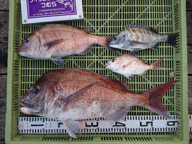 上山さん 38~44cmマダイ4匹...
