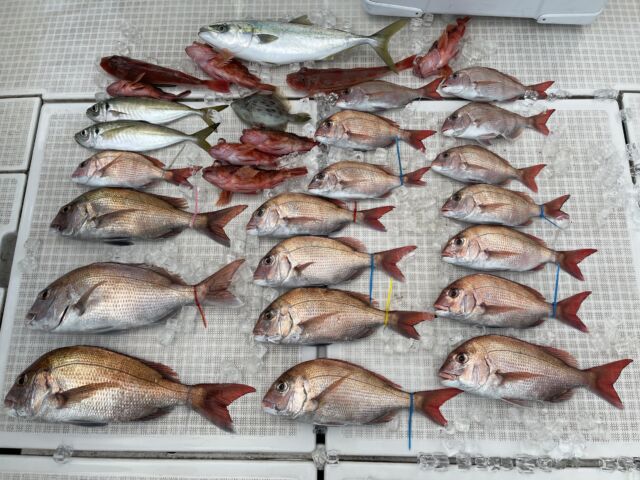 青物、マダイ最終便で出船し...