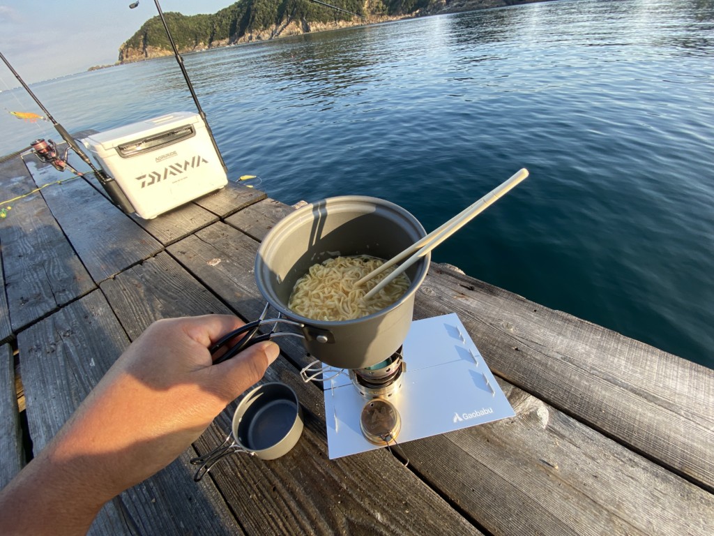 寒い季節、釣り場であったかいコーヒーや、カップラーメンを食べるのは至高の瞬間!