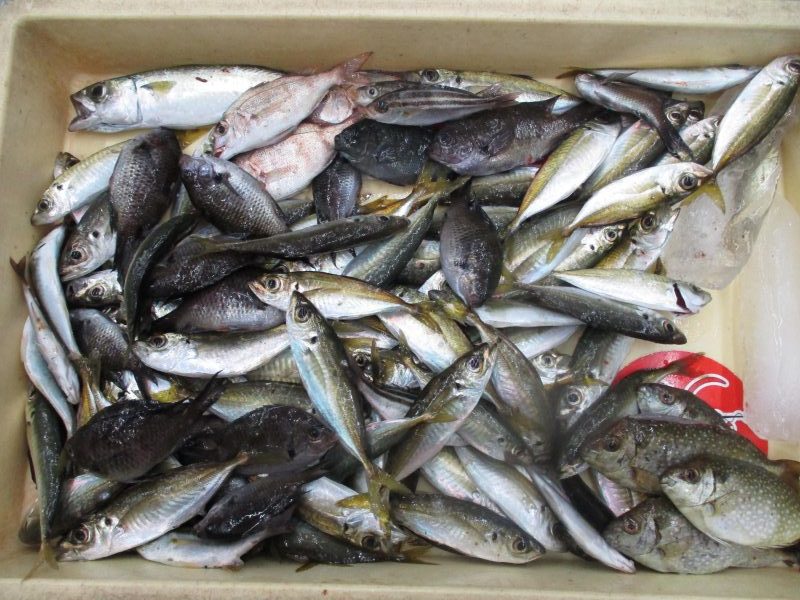 佐野漁港でイワシ8cm前後約20尾、ハマチ40cm。
