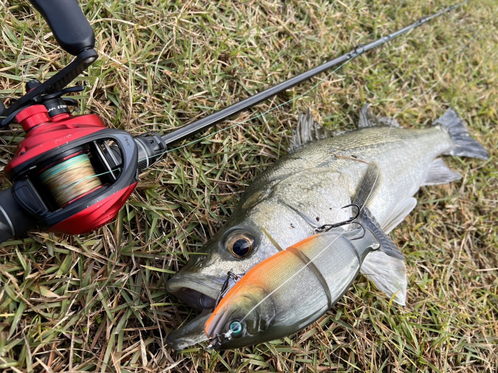 ビッグベイト150〜200mmを使用。まだ鮎は落ちてきてる雰囲気はないけど、雨後少し濁り入れば高確率で期待できそう。