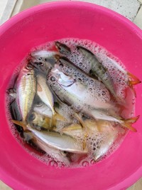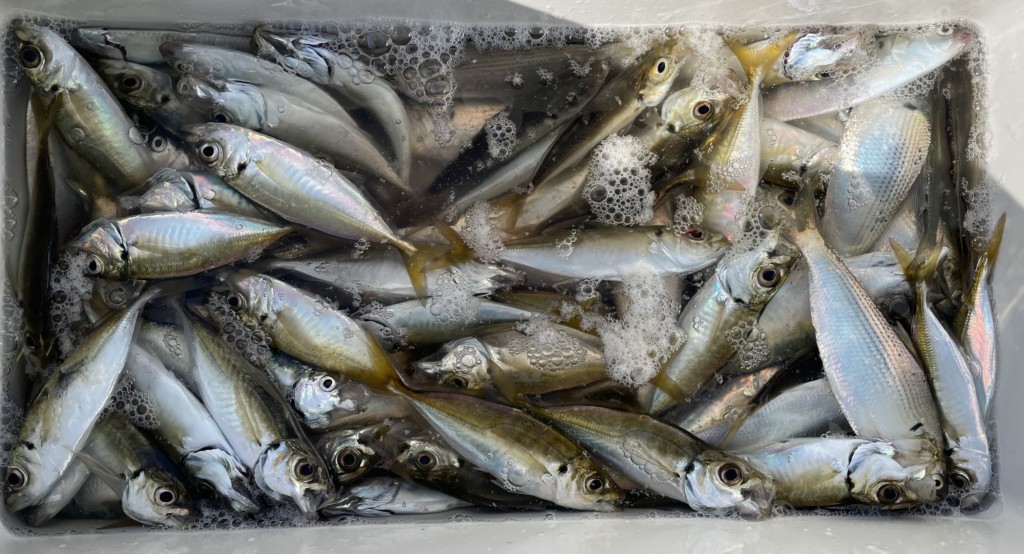 アジ12~20cm80尾、サッパ13~15cm450尾、カタクチイワシ8~12cm50尾。