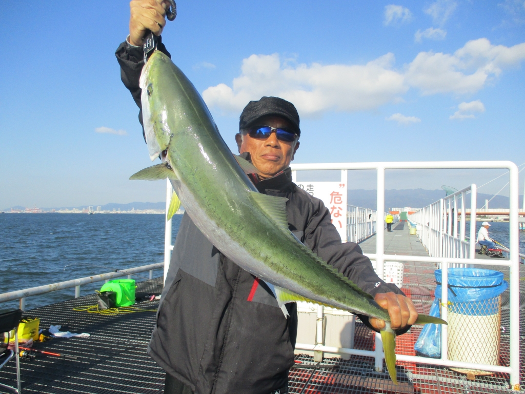 メジロ63cm、マダイ46cmと34cm、小ダイ多数、チヌ34cm頭に4尾、グレ7尾、ヒラメ50cm、アジ30~40cm前後5尾、小アジ多数、タチウオなど。