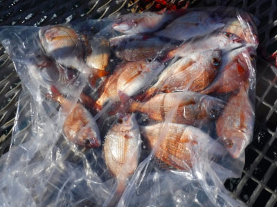 マダイ31cm、小ダイ多数、ヒラメ32cm、チヌ30cm、サンバソウ25cm、カワハギ8尾、ガシラ21cm、タチウオ、メバル、アオリイカ、アジなど。