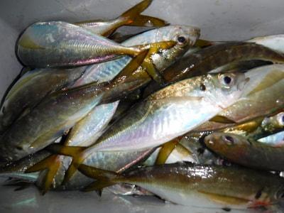 アジ16~24cm10尾、小アジ11~15cm190尾、豆アジ7~10cm100尾、サッパ10~15cm250尾、コノシロ15~27cm650尾、サヨリ15~32cm120尾、ヒイラギ8~12cm50尾、スズキ70~80cm6尾、ハネ53cm、ブリ84~89.5cm5尾、メジロ74cmと63cm、チヌ32~44cm3尾、キビレ23cm。