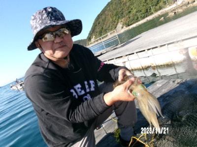 スズキ61cm、アオリイカ600g頭に2ハイ、ハマチ47cm頭に2尾、ヒラメ36cm、ウマヅラハギ1尾、カワハギ3尾、小アジなど。