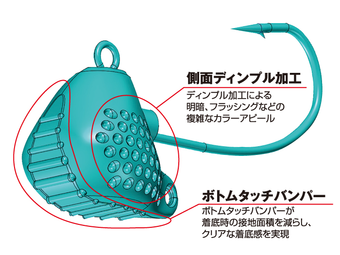 実釣テストを重ねて作られており、より攻撃的なフッキングを可能にした”ゼロアングル”新設計フックを採用。フックは刺さり抜群の”ナノ・スムース・コート”を搭載しており、貫通性能を極めた超尖鋭製の鈎先”スパットテーパー”と、申し分ない性能のフックです。