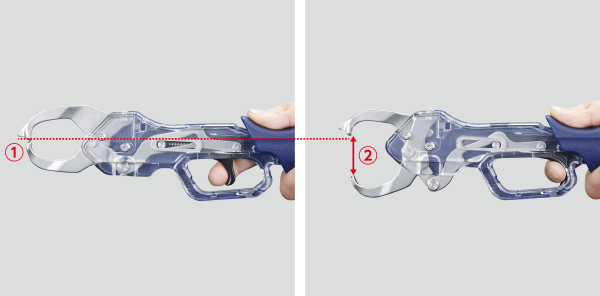 ①から②の幅が30mmあるので、大型魚の分厚い口でもしっかり挟み込めますね!
