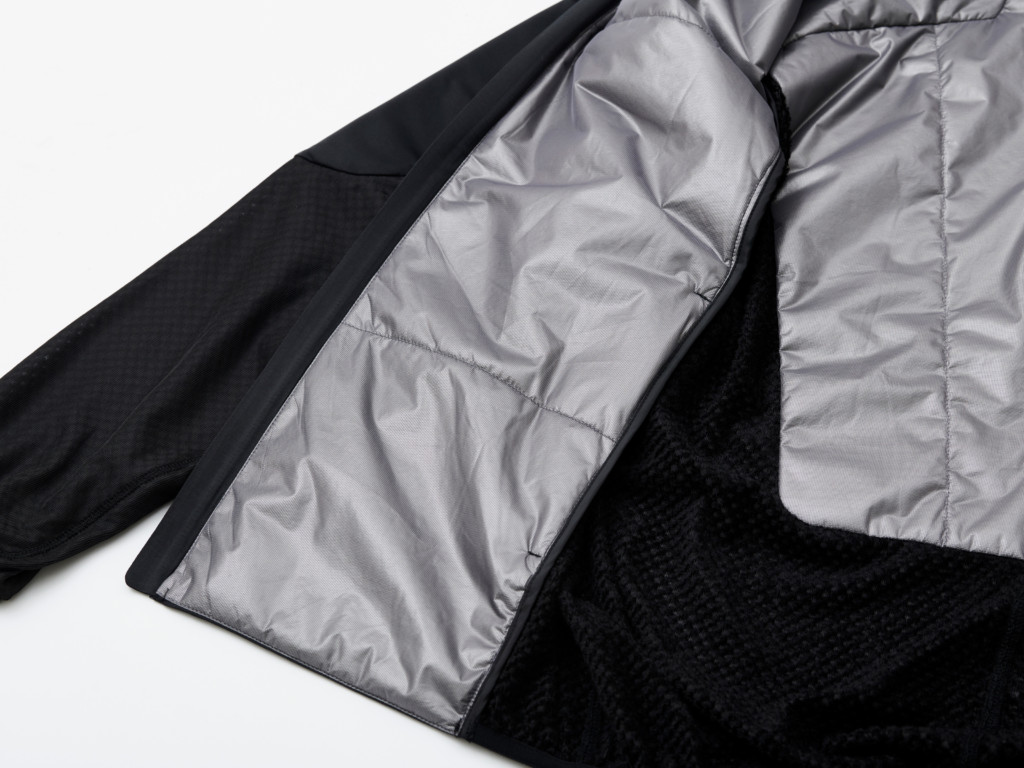 また、中綿と遠赤外線裏地で身体を暖めてくれるほか、蒸れ対策として、脇下や腰などの蒸れる箇所は、通気性と保温性を兼ね備えたサーモフライ素材を採用。