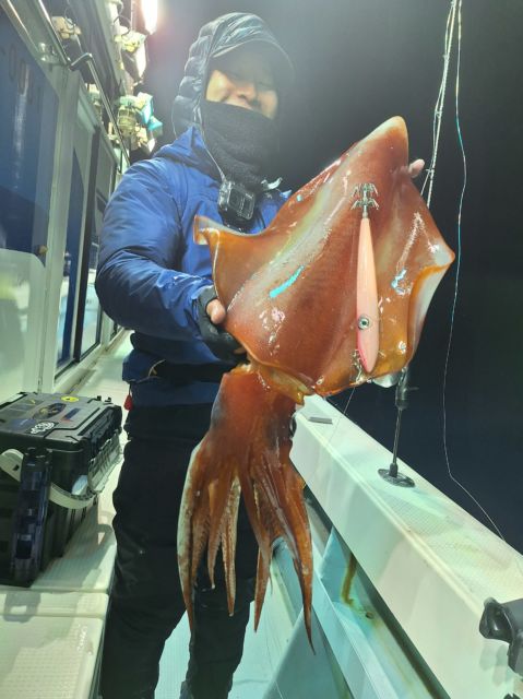 敦賀沖は、タルイカがまだまだ狙い目。サイズは14kgオーバーを頭に、数は船中2ケタ釣果の日もあり、出船できれば大物とのやり取りが楽しめそうです。
