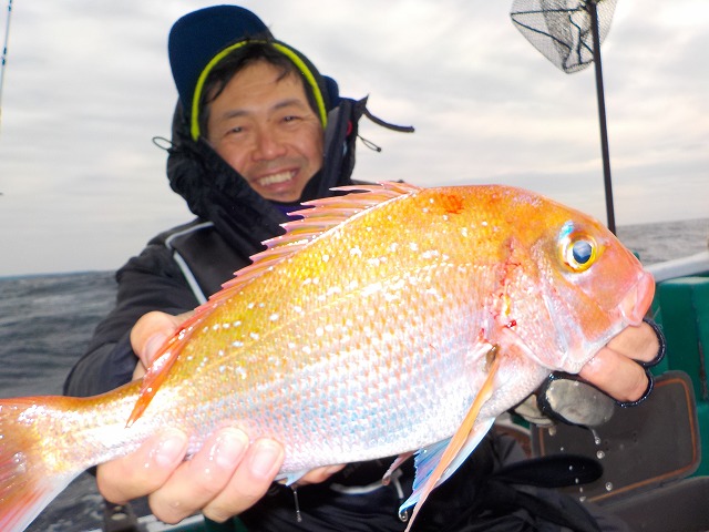12月10日には、船中でウメイロ25~27cm11尾とオキアジ45cmにマダイ54cmとアカイサギ25~44cm20尾にレンコダイ30尾などが上がっていました。