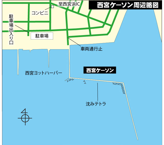 兵庫県西宮浜の東側にあり、南の沖に延びた長さ1.3kmの波止が、「西宮ケーソン」と呼ばれる釣り場です。