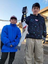セイゴ32cm、小ダイ7尾、チヌ35cm、サヨリ28~32cm45尾、ウマヅラハギ32cm、小アジ多い人30尾ほど。