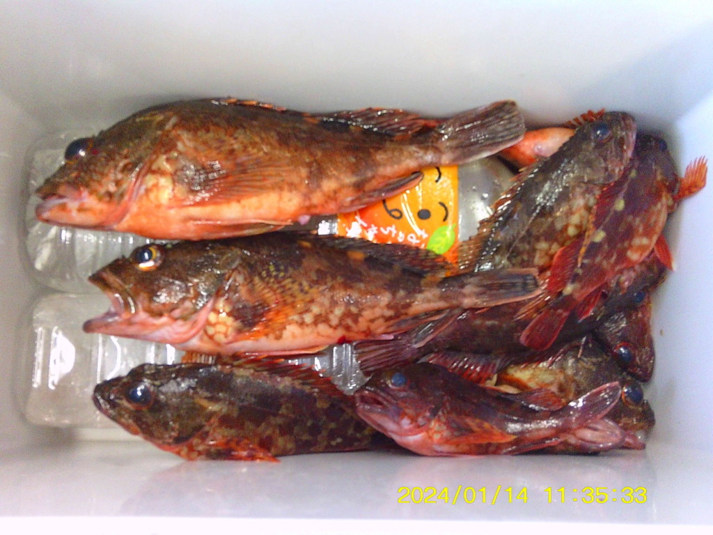 メバル25cm頭に6尾、ウマヅラハギ33cm頭に2尾、マダコ3バイ、小アジなど。