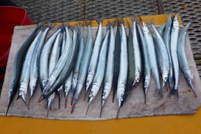 小ダイ15尾、マダコ0.4kg、サヨリ33cm頭に8尾、小アジなど。