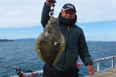 ヒラメ50cm、ヒラスズキ60cm、アジ10尾、小アジ310尾など。