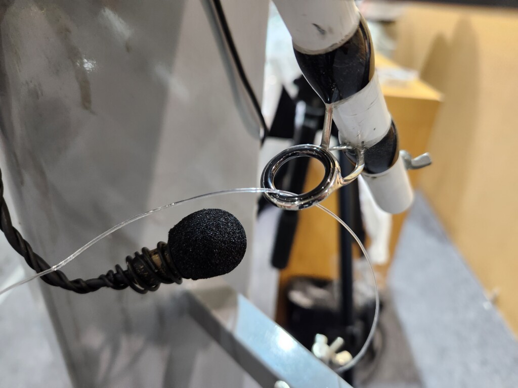 ラインの先には3kgのオモリを繋げ、「HARDリング」と「SiCリング」に通し、同時に引いて下ろしてを繰り返します。
