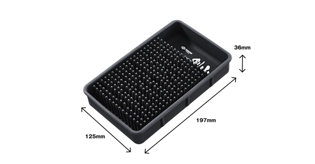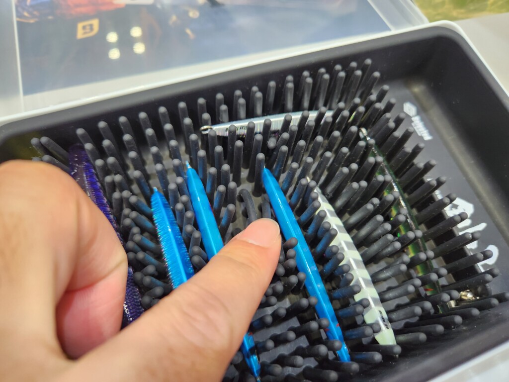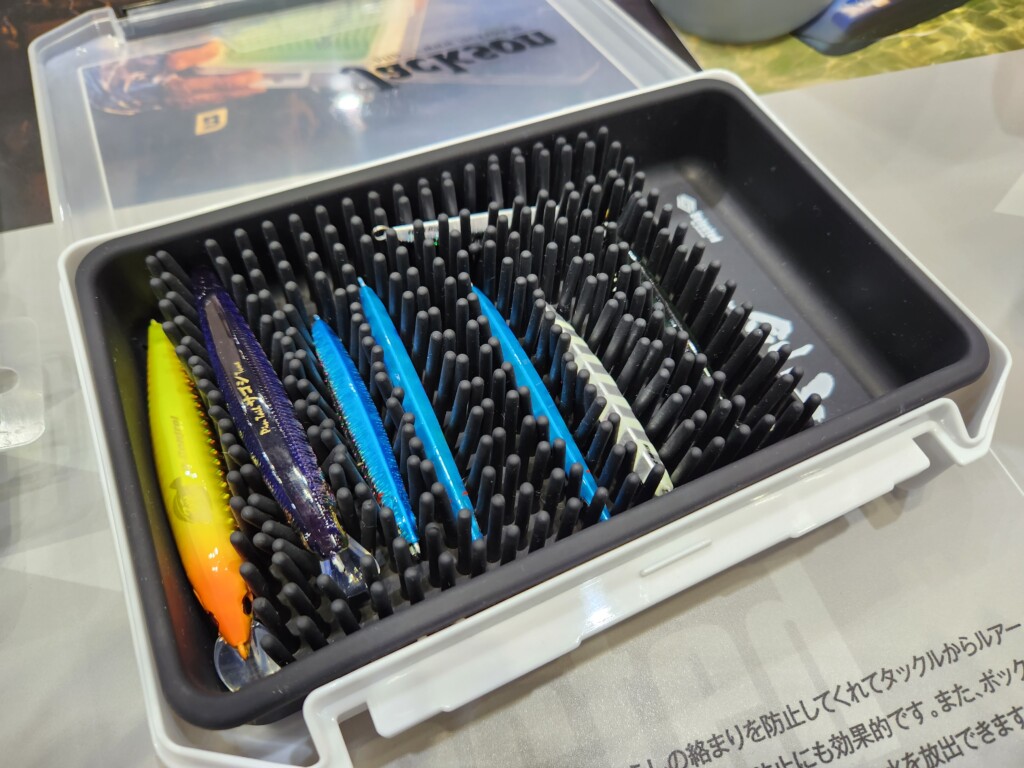 ジャクソンから発売されている「剣山 ケンザン」なんですが、ルアーやジグを入れ、無数の突起が間に入り、ルアー同士がぶつからないというのが魅力のアイテムです。