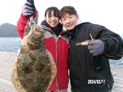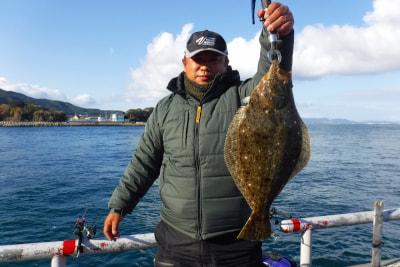 ヒラメ61cm、ウマヅラハギ37cm、チヌ46cm頭に2尾、サヨリ数尾、メバル27cm頭に多数、小アジ、サバ、カワハギ、マダコ3.2kg頭に3バイなど。