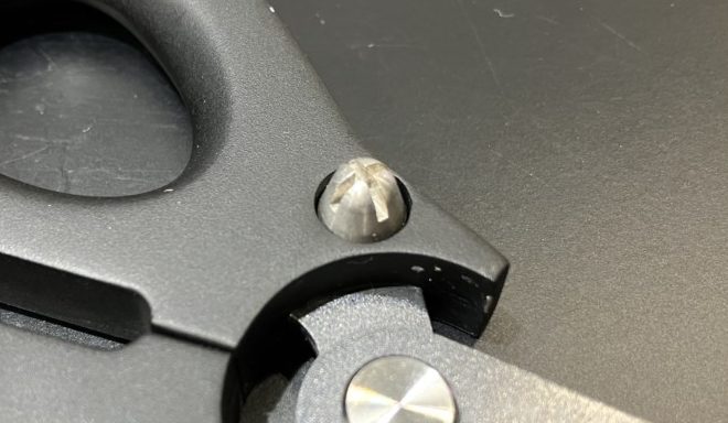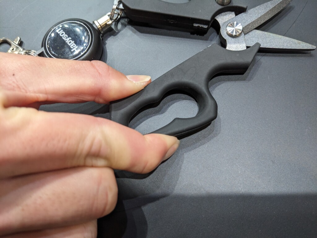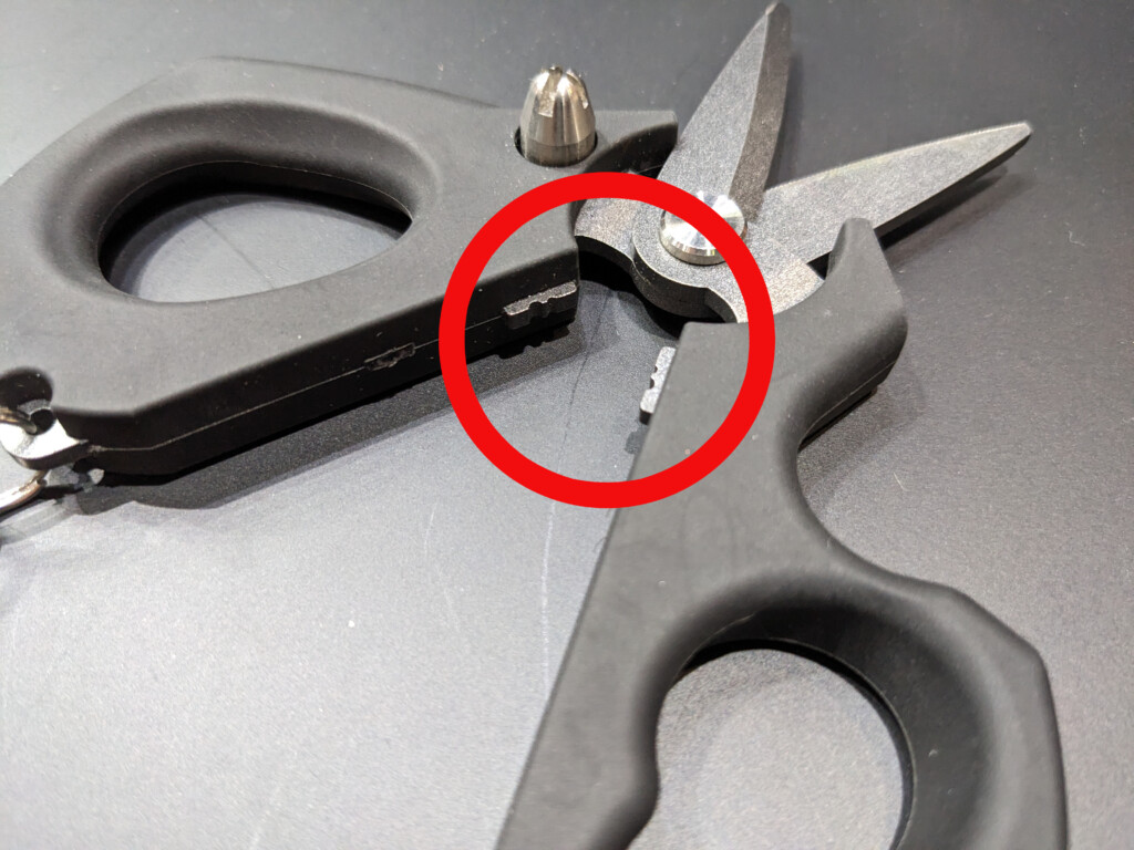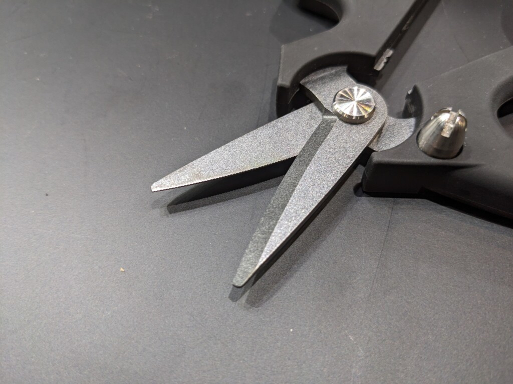 まずは切れ味のよいブレード部。PEであっても切る際に糸が逃げにくい両面ギザ刃仕様で、PE0.5~3号がスパスパ切れる。
