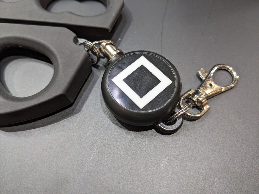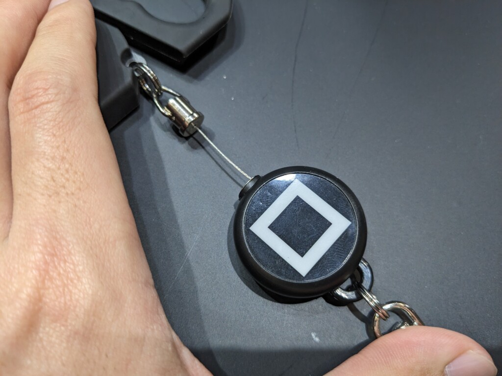 ライフジャケットやバッグなどに吊り下げれるように、ピンオンリールも付属。