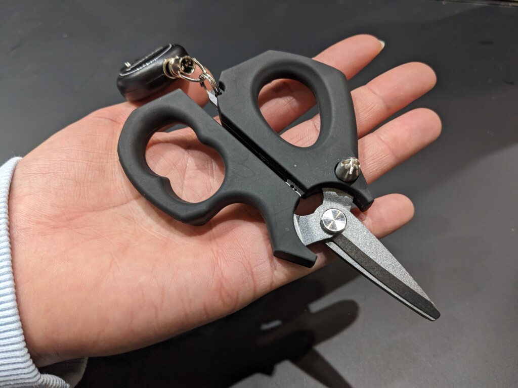 そう思わされたのがハピソンから新登場する「計測ラインカッター」。なんとこのハサミ、1台で6役をこなすという。