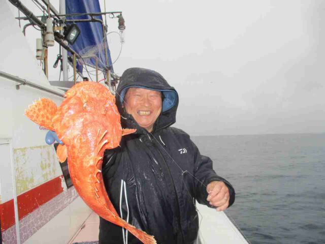 オニカサゴ狙いは45cm級を頭によい人2ケタ釣果も狙え、ガシラの20~35cmと合わせて楽しめます。