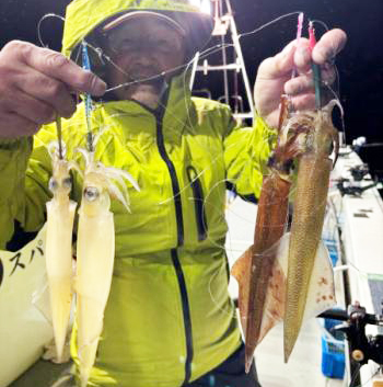 ヤリイカは、全体的に釣果は渋めですが、よい人は2ケタ釣果をキープ。