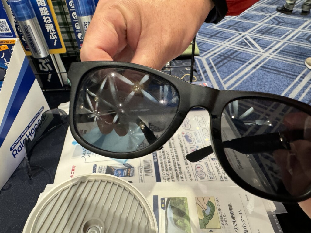 加湿器を使ったデモンストレーションを体験したのですが、「スポルファ フォグシールド」を使用したレンズと、不使用のレンズを見比べると一目瞭然。