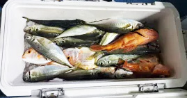 五目釣りはアジを主体にマダイや、イサギ、根魚などまじって上がるほか、半夜釣りでは各沖で数はまだそれほどですが、シロイカも釣れています。