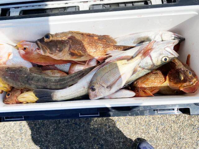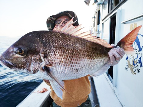 五目釣りではレンコダイ、チダイ、イサギ、ガシラなどが1人2ケタ狙え、マダイは30~45cmが主体ですが、中には83cmの大ダイが上がった日もありました。