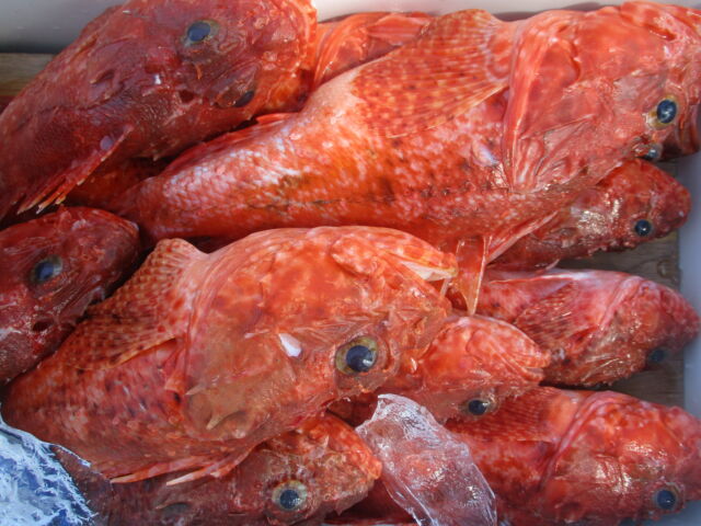 根魚狙いは天ビン仕かけにサバの切り身エサで、オニカサゴ30cm前後、ガシラ30cm前後が順調。ほかにもアマダイやチカメキントキがまじって、合わせて土産は十分です。
