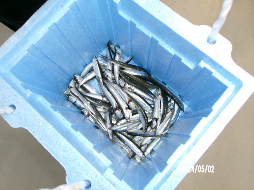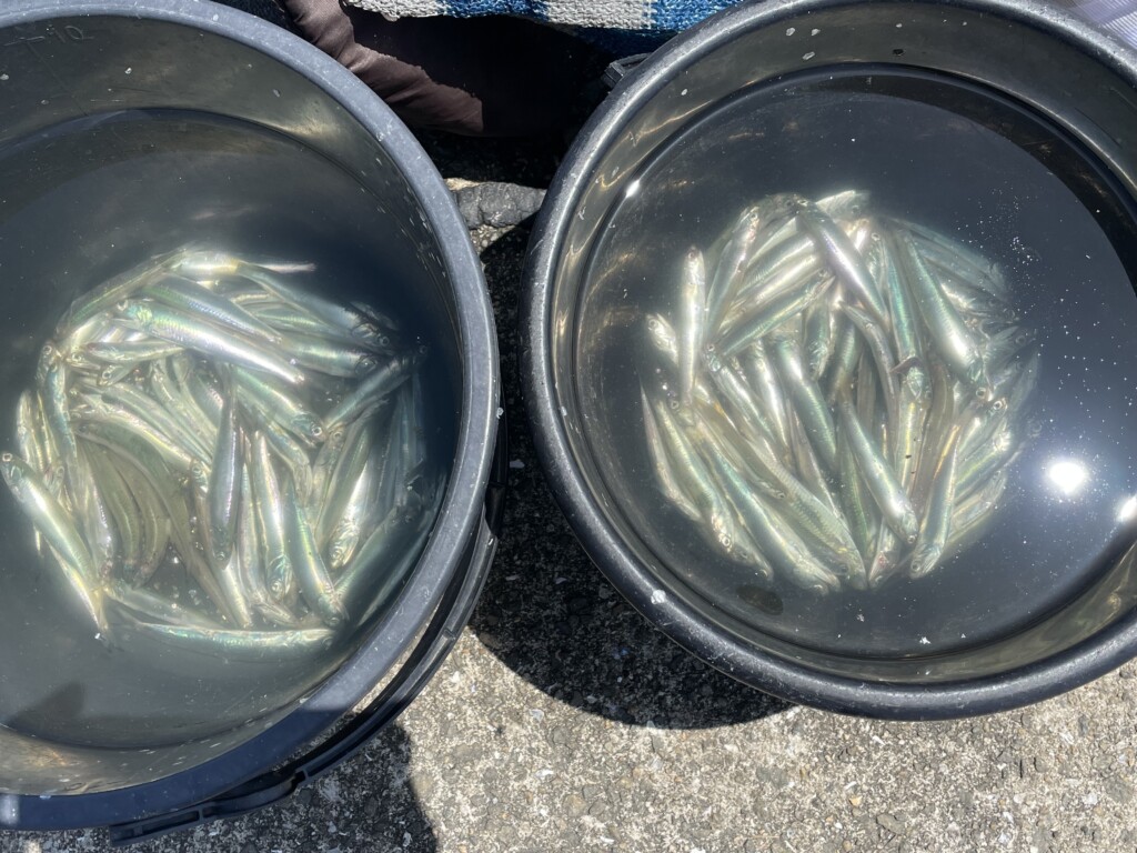 カタクチイワシ5~13cm400尾、サッパ10~13cm20尾、アジ10~15cm15尾、コノシロ15~29cm3尾。