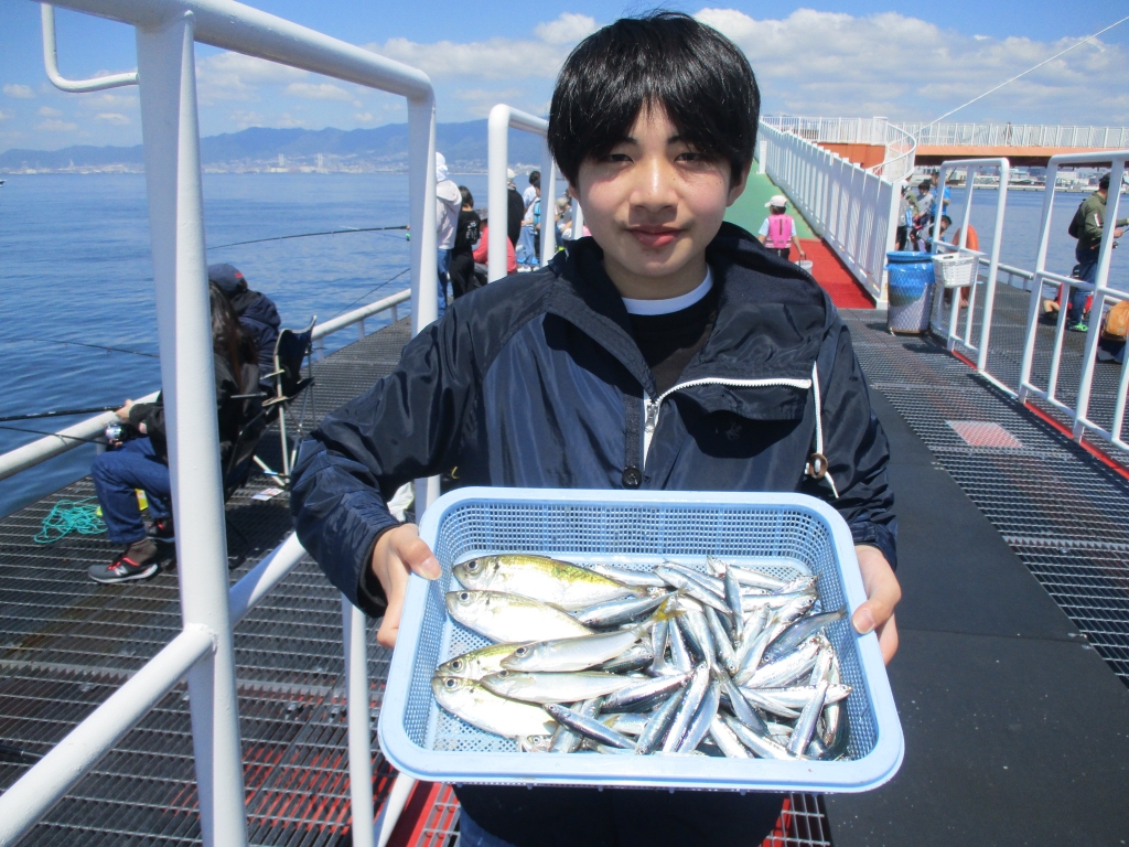 アジ30cmと小アジ112尾、ガシラ25cm頭に26尾、マダイ30~52cm3尾、小ダイ4尾、サヨリ4尾、ベラ、ウミタナゴなど。