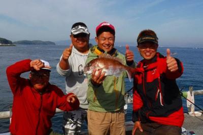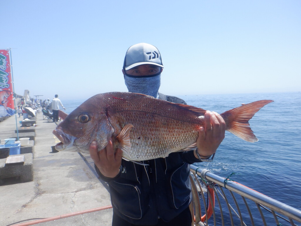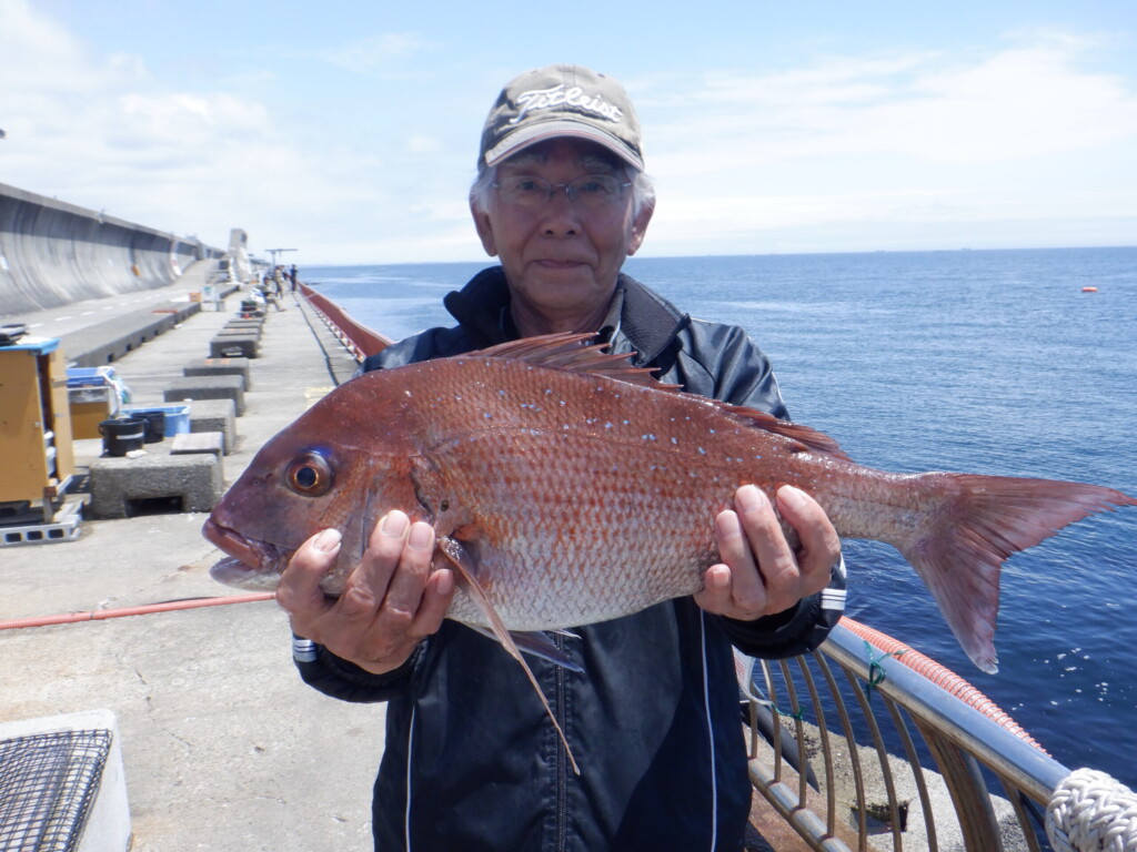 ハマチ52cm、マダイ44cmと37cm、カンダイ40cm、サンバソウ25cm、ウマヅラハギ30cm、カワハギ27cm頭に22尾、スズキ68cmと65cm、チヌ45cm、コウイカ2ハイ、ヒラメ37cm、メバル28cmと27cm、マダコ、小アジなど。