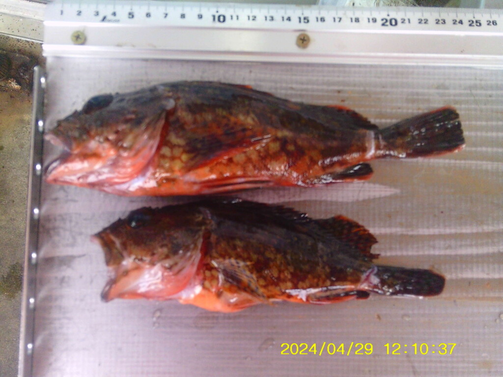 カレイ43cmと27cm、ガシラ16cmと25cm、メバル20cm。