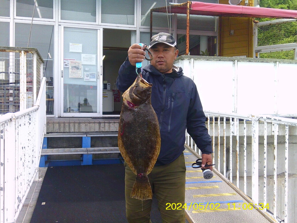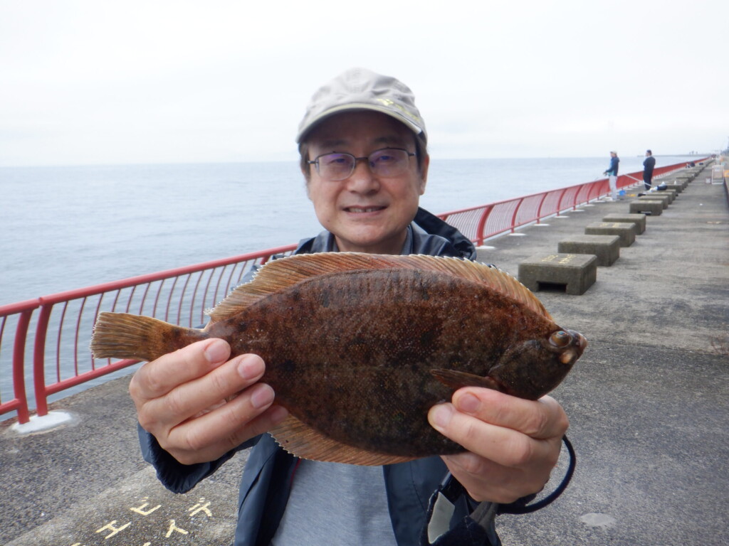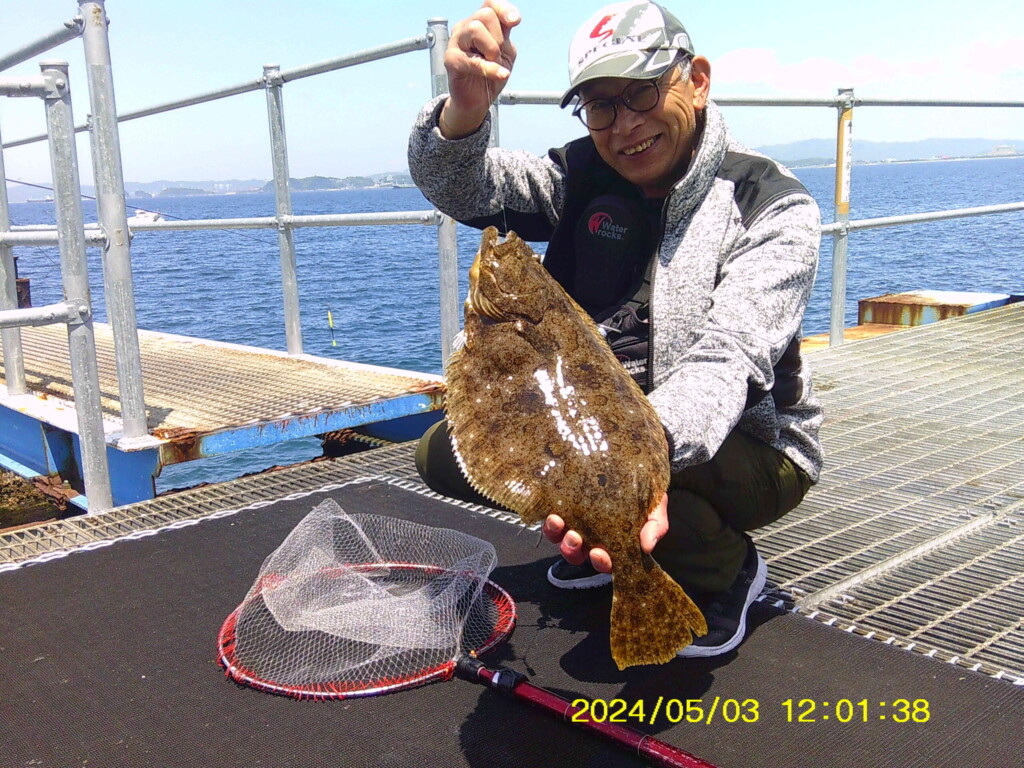 ヒラメ52cmと43cm、マダイ46cmと40cm、チヌ47cm、ハネ、ウマヅラハギ、オコゼ、ガシラ、アジ25cm頭に数尾など。