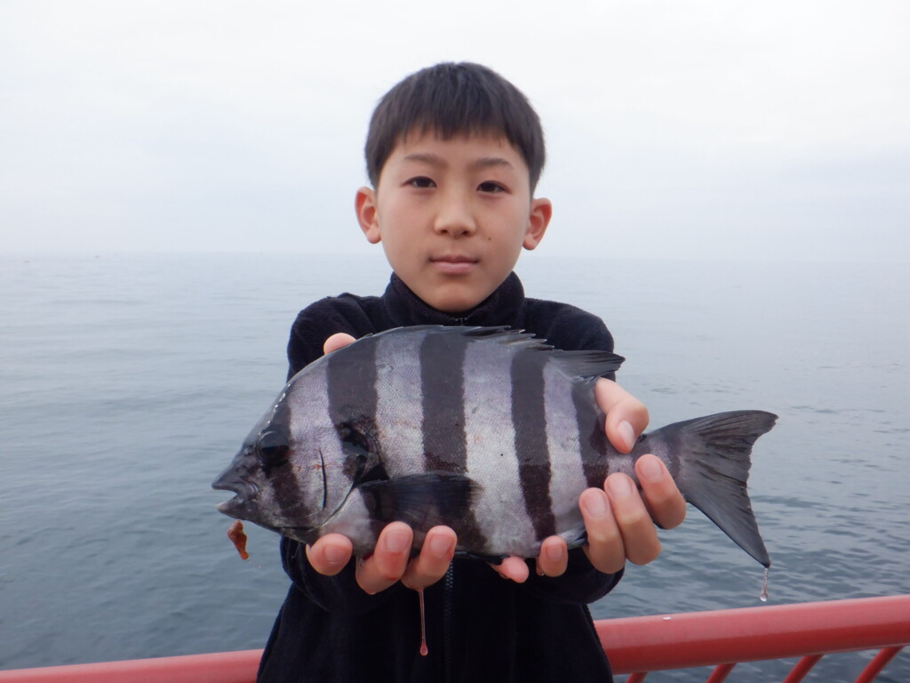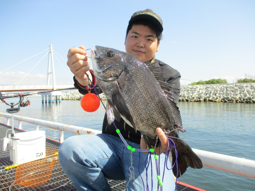 チヌ38.5cm、ツバス1尾、アジ20cm、ガシラ20cm頭に41尾、小ダイ3尾、メバル1尾。