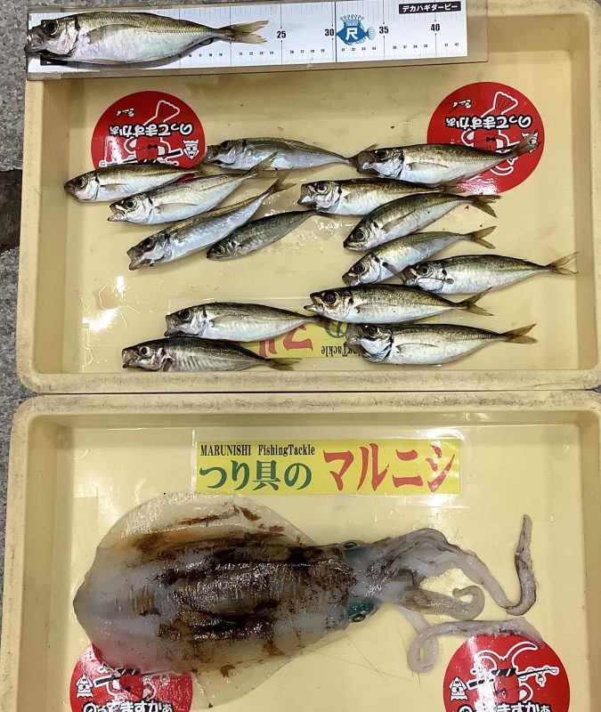 田ノ浦でアジ24cm頭に15尾、アオリイカ940g。