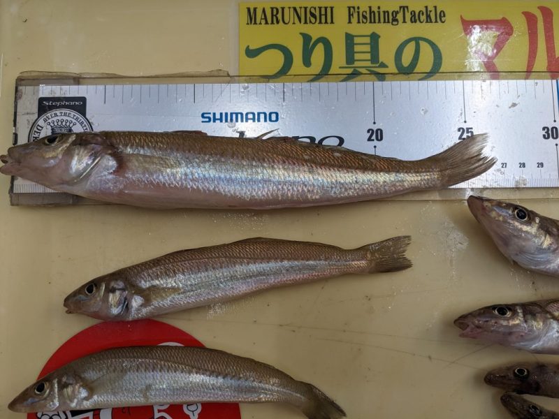 和歌浦の投げ釣りで公文氏キス26.5cm頭に数尾、由良のエギングでデグチ氏アオリイカ1.4㎏、雑賀崎のサビキ釣りでタイキ君らアジ、イワシ多数。