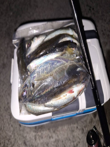 東二見人工島~播磨新島でアジ18cm頭に30尾、ほかカレイ、チヌ、ガシラ、タケノコメバルなどが釣れています。