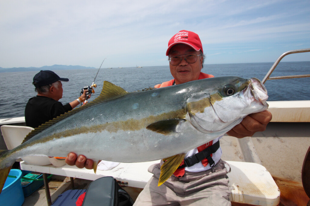 中浜、網野沖のフカセ釣りや天ビンズボ釣りでは、ヒラマサ70cm級やメジロの青物が上がるほか、乗っ込みマダイ、イサギ35~40cmがまじって楽しめます。