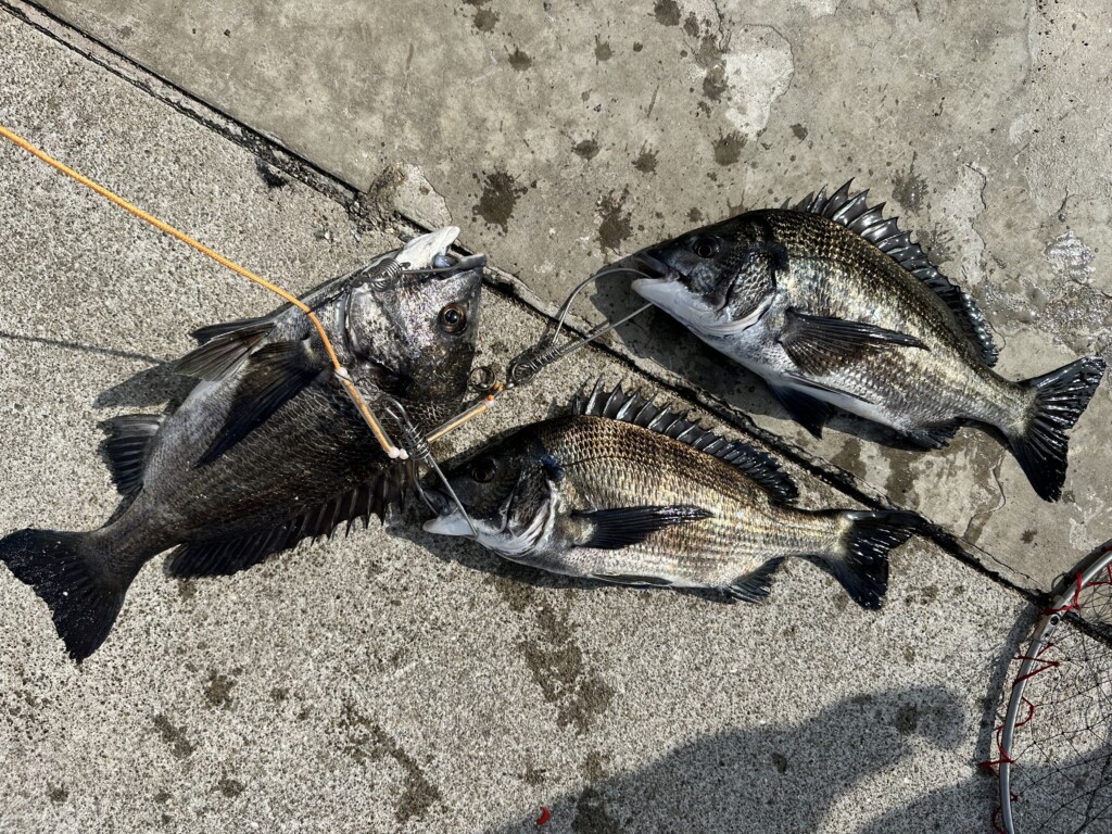 ベラ16.6cmと16cm、カレイ39cm、チヌ43cm。