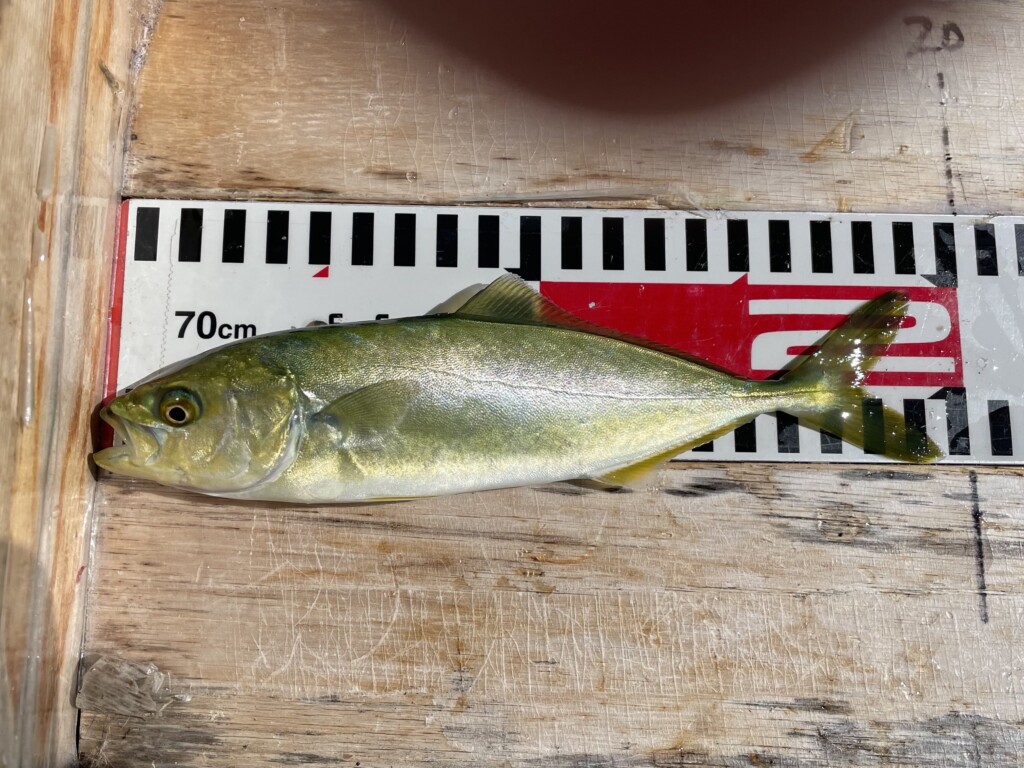 ハマチ50cm、スズキ70cmと65cm、ガシラ5尾、ウマヅラハギ2尾、ヒラメ40cmと30cm、小アジ220尾。
